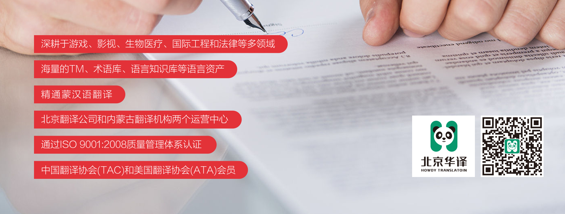 北京華譯翻譯有限責任公司(簡稱北京華譯)————為企業提供多語種翻譯的語言服務機構,是中國的蒙漢語翻譯供應商,秉承“、精益、高效、互助”的價值觀,深耕于生物醫療、國際工程和法律等多領域與行業,以為客戶提供的行業翻譯解決方案為己任,致力于成為國內多語種翻譯行業的領軍。